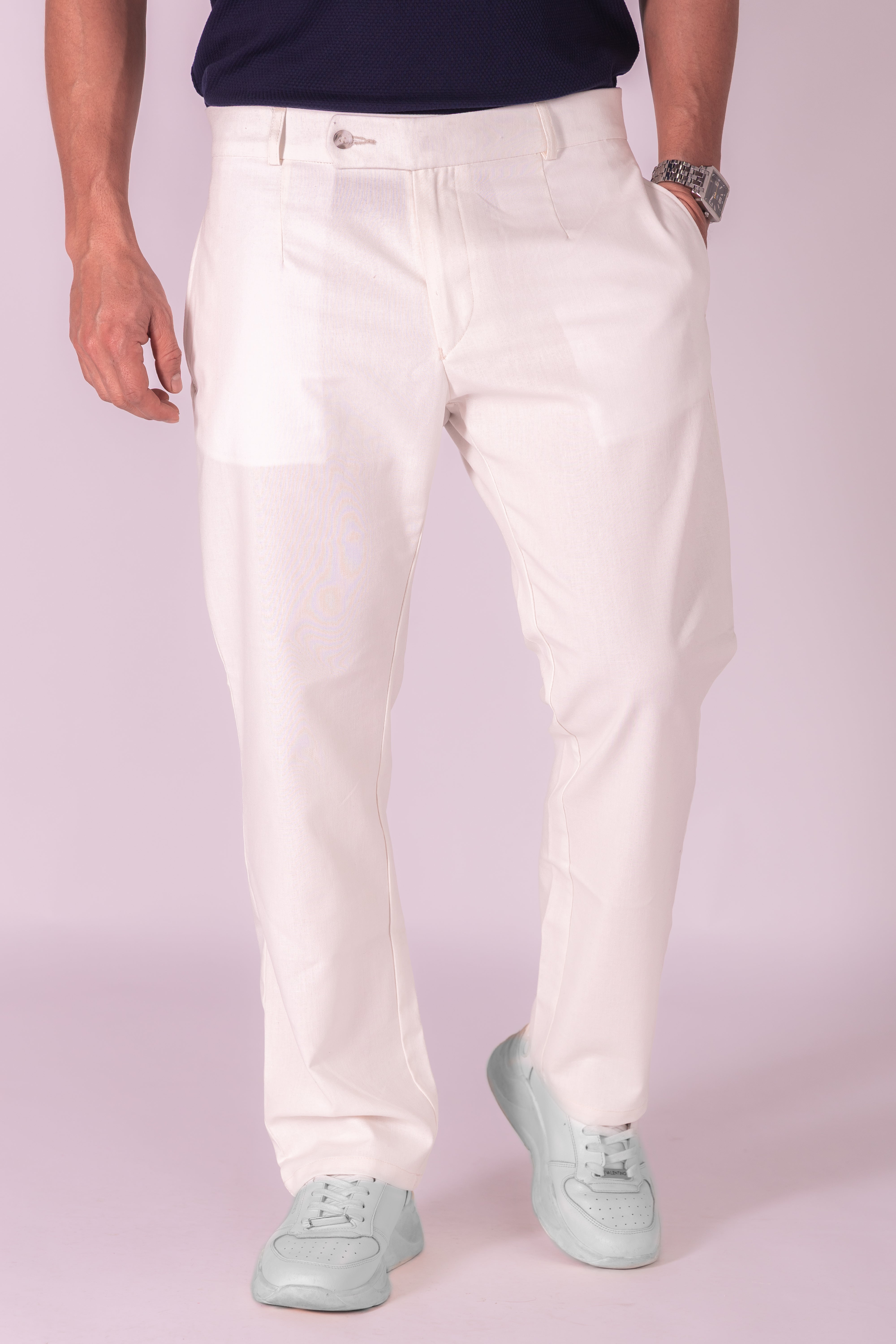 El pantalón Sorrento fusiona la elegancia clásica con un confort absoluto. Con un diseño de relaxed fit, está confeccionado en lino fresco y ligero, ideal para cualquier ocasión. Cuenta con pinzas delanteras que le dan una silueta definida, bolsillos de ribete traseros discretos y un cierre frontal cruzado con cremallera y botón que asegura un ajuste impecable